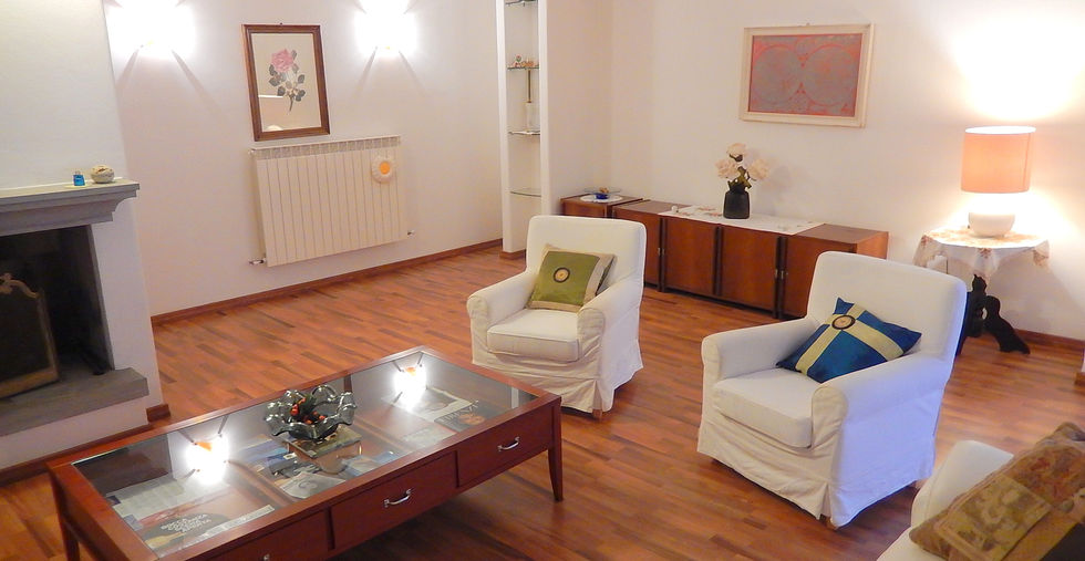 Il corpo della casa centrale è composto al piano terra da un grande salone con tavolo da pranzo e due divani letto con area Tv. Dal salone si accede al bagno di servizio e alla cucina super attrezzata ampia e molto comoda e luminosa, che porta alla veranda climatizzata dove mangiare tutti insieme sul bellissimo e lungo tavolo di legno antico.